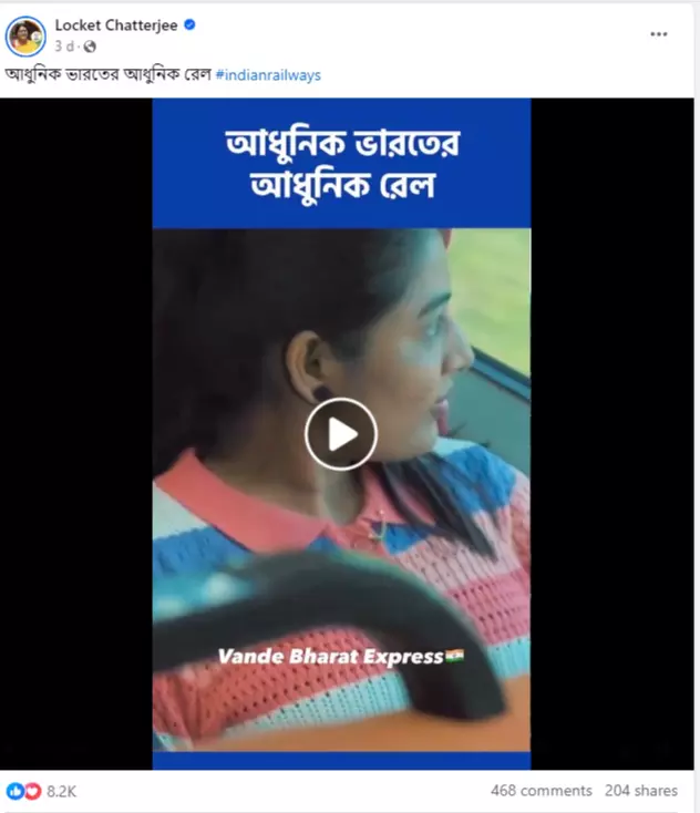 সোশ্যাল মিডিয়া শেয়ার করা ভিডিওতে দেখা যায়, বন্দে ভারত এক্সপ্রেস এর বিভিন্ন দুরবস্থার চিত্র, এছাড়াও ওড়িশায় হওয়া করমন্ডল এক্সপ্রেস এর দুর্ঘটনার ছবি, এছাড়াও ভারতীয় রেলের বিভিন্ন দুর্ঘটনার ভিডিও একসাথে যোগ করে ওই সম্পাদিত ভিডিওটি লকেট চট্টোপাধ্যায়ের পোস্টের ক্যাপশন সহ শেয়ার করা হচ্ছে। ক্যাপশনে দেখতে পাওয়া যায়, “আধুনিক ভারতের আধুনিক রেল #indianrailways”