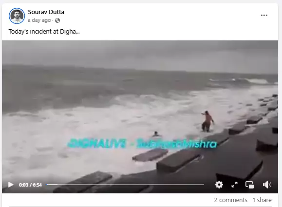 এছাড়াও, ২৮ মে ২০২৪ ভিডিওটি শেয়ার করে একজন ফেসবুক ব্যবহারকারী ক্যাপশনে লিখেছেন, "দীঘায় আজকের ঘটনা"।