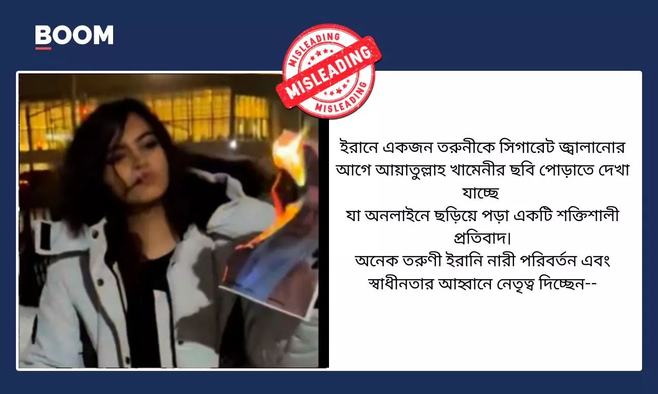 খামেইনির ছবি জ্বালিয়ে সিগারেট ধরানো তরুণীর ভাইরাল ছবি ইরানের নয়