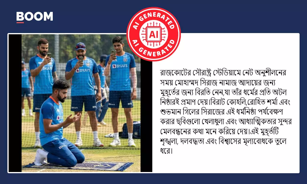 ক্রিকেট স্টেডিয়ামে মহম্মদ সিরাজের নামাজ পড়ার AI ছবি ভাইরাল