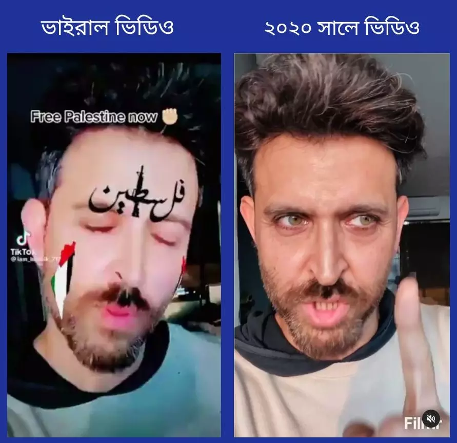 হৃতিক রোশনের প্যালেস্তাইনের মুক্তির পক্ষে বার্তার ভিডিওটি ২০২০ সালের একটি ইনস্টাগ্রাম পোস্ট সম্পাদনা করে তৈরি করা হয়েছে।