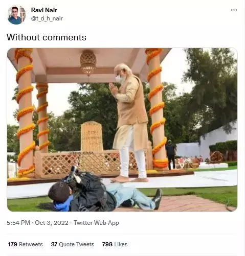 ২ অক্টোবর ২০২২-এ রাজঘাটে প্রধানমন্ত্রীর আগমনের মূল ছবিটি তাঁর যাচাই-করা টুইটার-হ্যান্ডেল থেকে টুইট করা হয়, ছবিটির সঙ্গে আরও দুটি ছবিও টুইট করা হয়।
