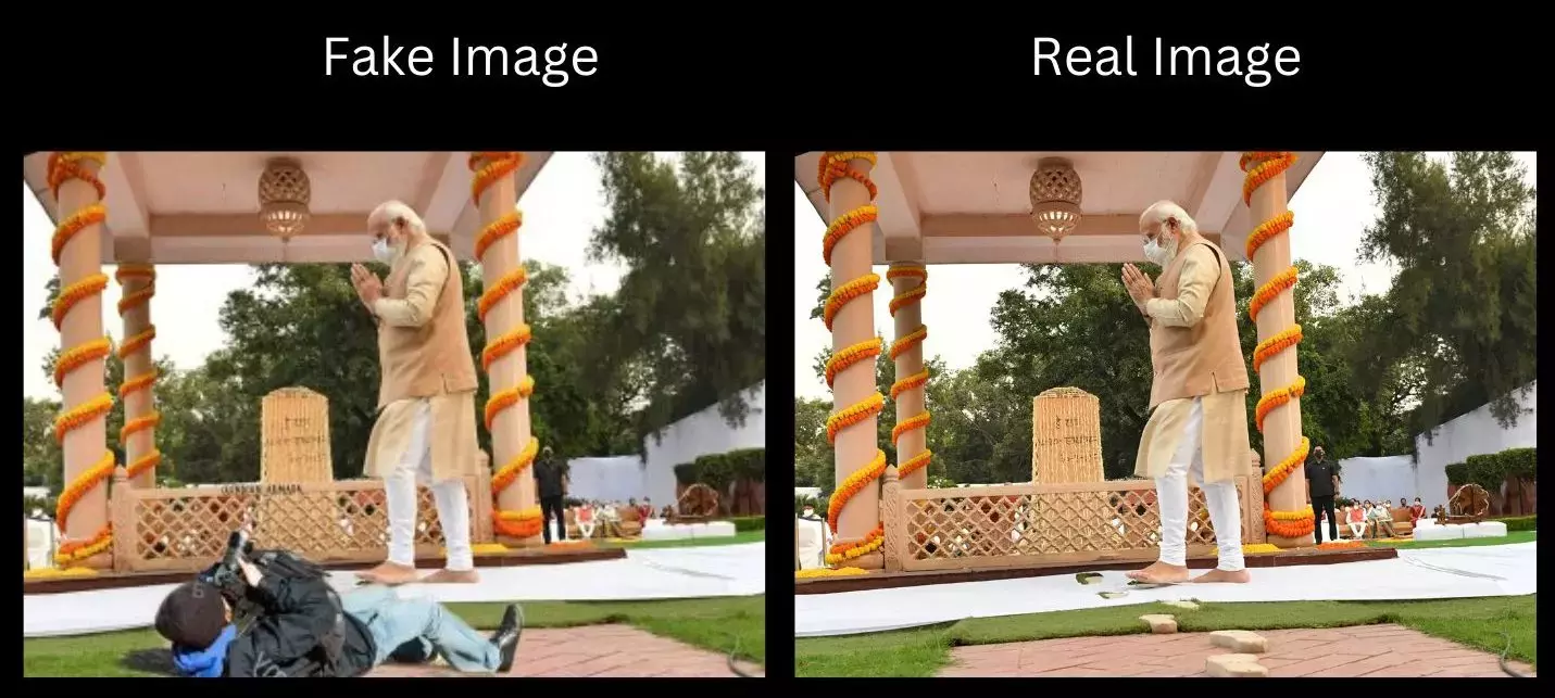 মূল ছবি ও ভুয়ো ছবি দুটির মধ্যে একটি তুলনা নিচে দেখুন।