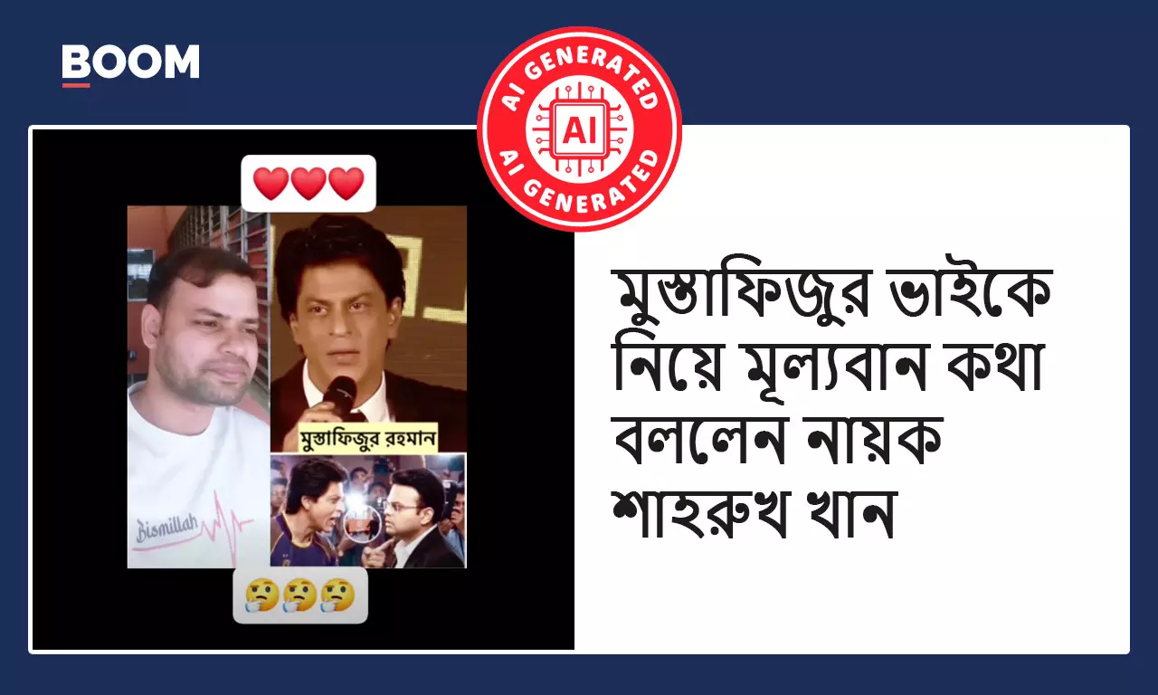 বুম দেখে শাহরুখ খানের পুরনো একটি ভিডিওর উপর এআই ভয়েস বসিয়ে ভাইরাল দাবিটি করা হয়েছে।