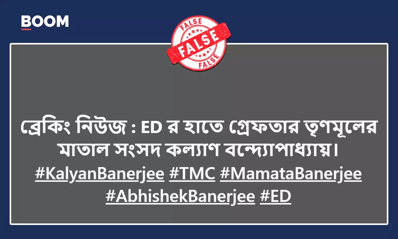বুম যাচাই করে দেখে ইডি গত ১০ জানুয়ারি কল্যাণ ব্যানার্জি নামক সমনামের এক ব্যক্তিকে প্রতারণার অভিযোগে গ্রেপ্তার করে। তাছাড়া তৃণমূল কংগ্রেস সাংসদের সাথে বুম এবিষয়ে যোগাযোগ করলে গ্রেপ্তারির দাবিটি ভুয়ো বলে কল্যাণ জানান, ইডি সাম্প্রতিক কালে তার সাথে কোনও যোগাযোগ করেনি।