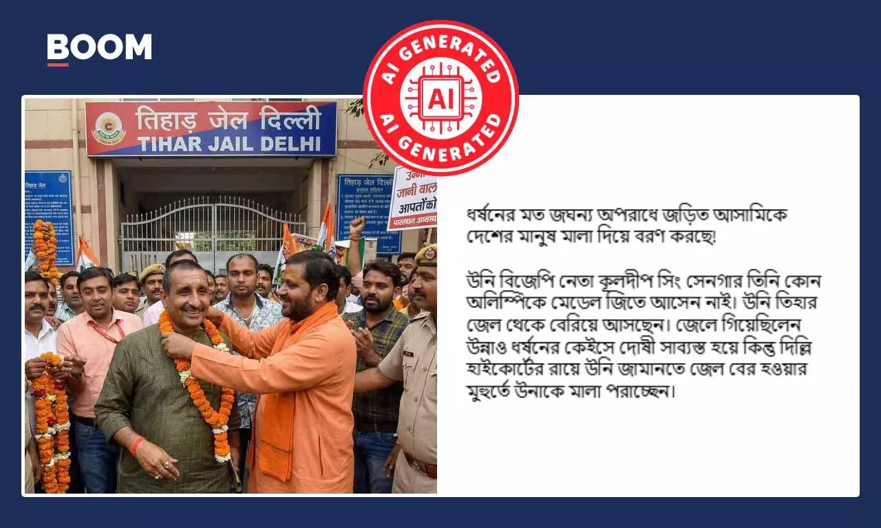 জেলের বাইরে উন্নাও ধর্ষণকাণ্ডে দোষীকে মালা দিয়ে বরণের ভাইরাল ছবি AI নির্মিত