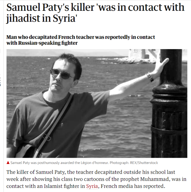 'দ্য গার্ডিয়ান'-এ প্রকাশিত স্যামুয়েল প্যাটির ছবি নীচে দেওয়া হল।